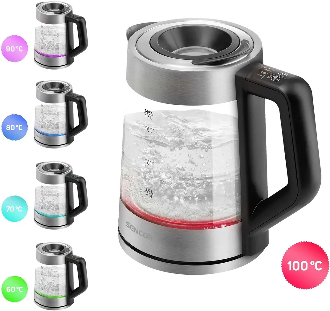 Sencor veekeetja SWK1795SS on klaasist korpusega ja vahelduv LED valgusega. Tootel on automaatne väljalülitus ja täiteava on kaanes. Veekeetja on alusel pööratav ning küttekeha on kaetud. Toote võimsus on 2200 W.
