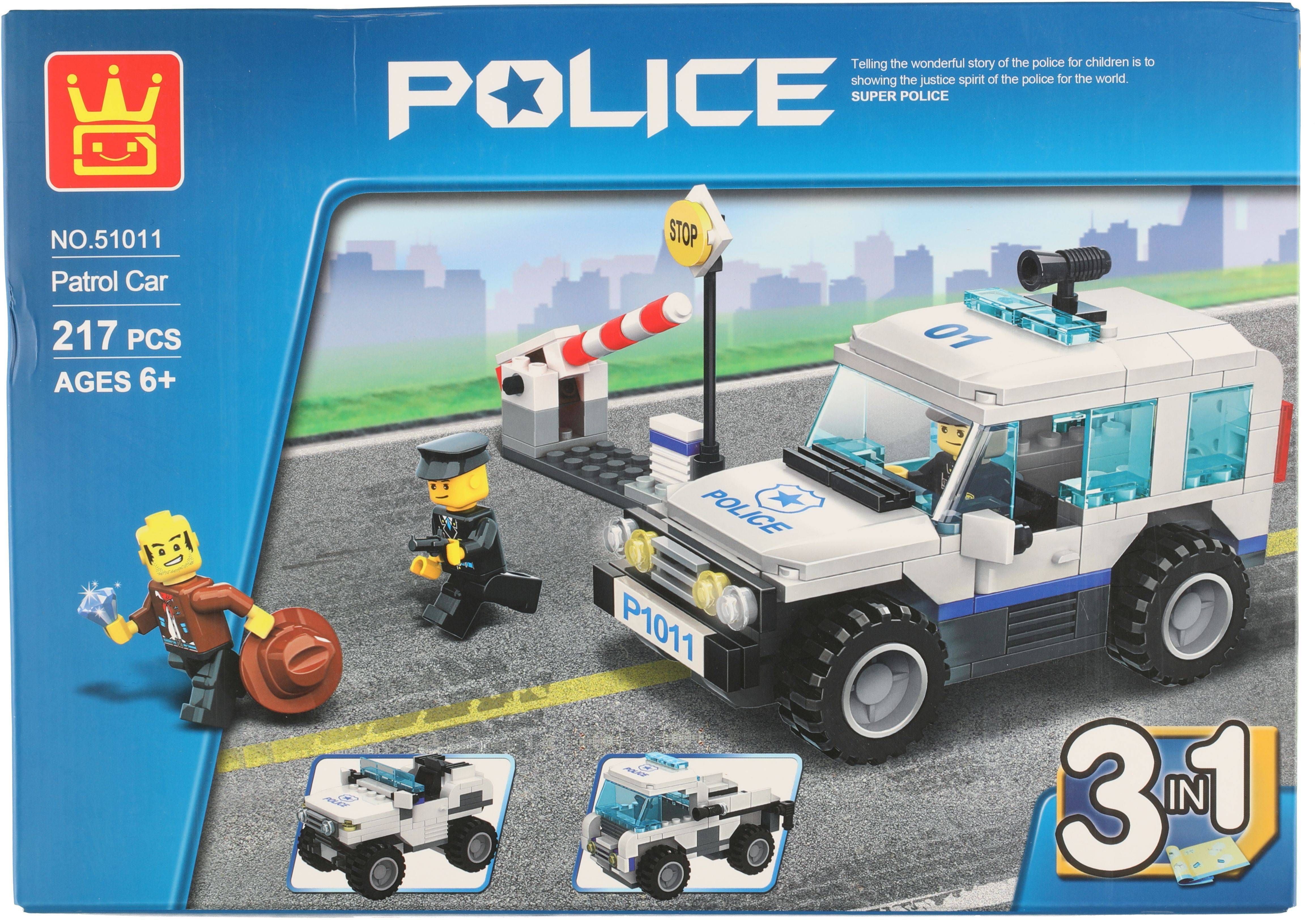 Mänguklotsid politseiauto ehitamiseks. Auto on võimalik ehitada 3 erinevat viisi. Komplektis 217 klotsi.