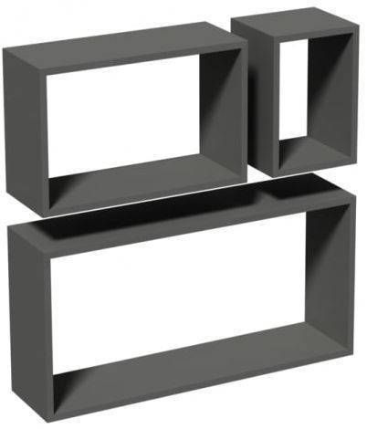 Domax riiulikomplekt ristkülik. Esimene riiul on mõõtmetega 15 x 60 x 30 cm, teine15 x 38 x 25 cm ja kolmas 15 x 17 x 25 cm.