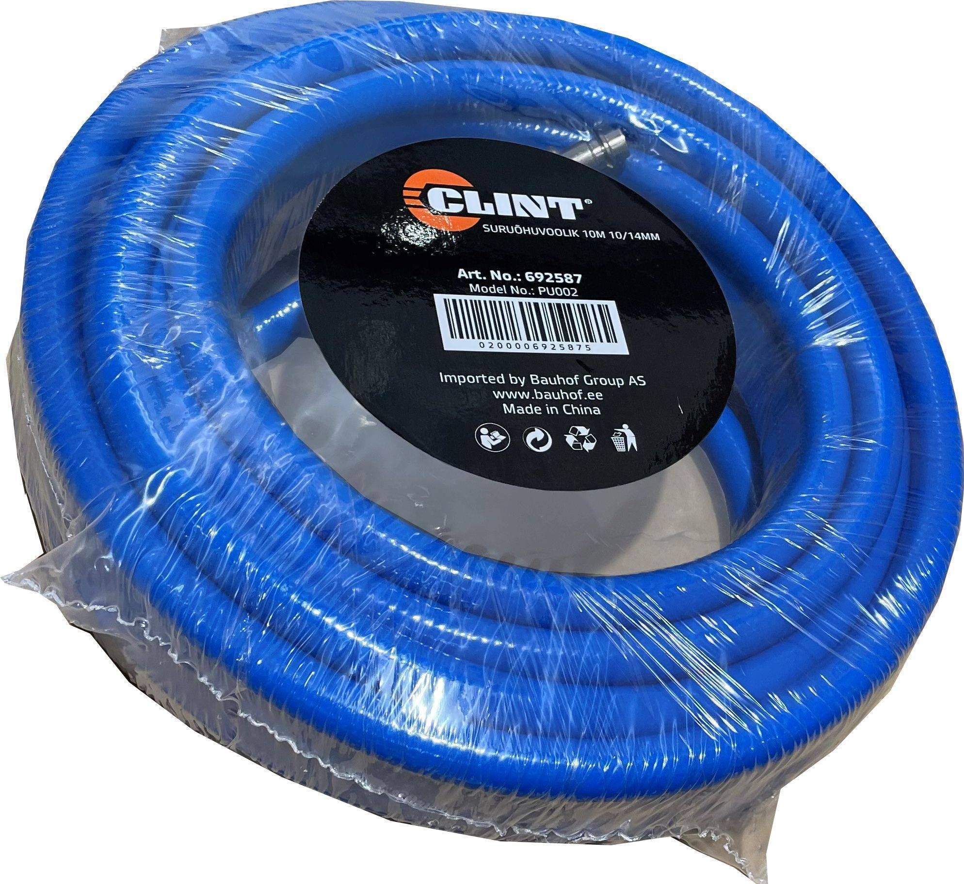 Clint kvaliteetne elastne kiirliitmikega suruõhuvoolik pikkusega 10 meetrit. Vooliku siseläbimõõt on 10 mm ja välisläbimõõt 14 mm.