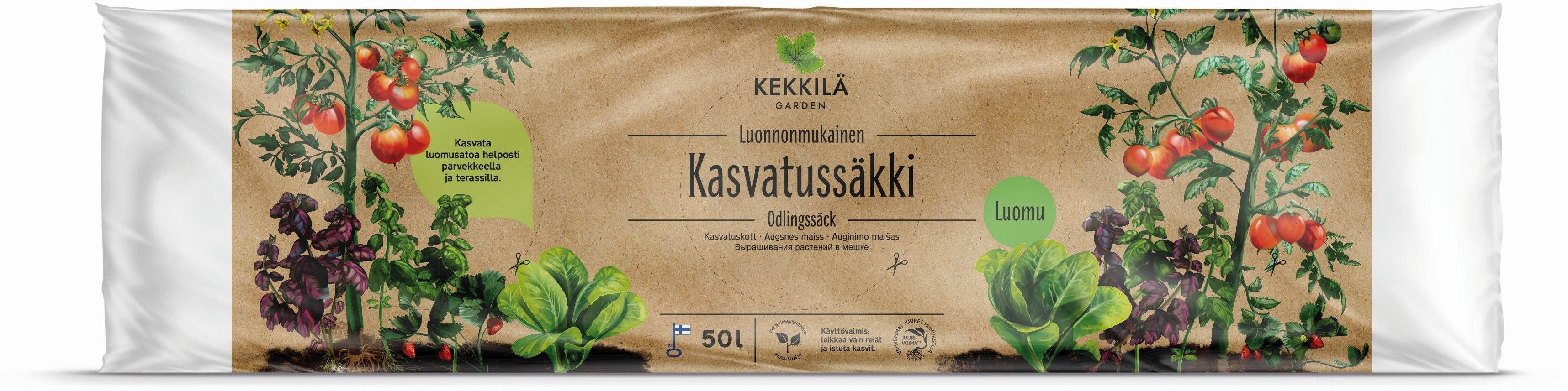 Kekkilä mahe kasvatuskott sisaldab kõrgekvaliteedilist heledat kasvuturvast, liiva ja peenliiva. Sobib erinevatele köögiviljadele nagu kurk, tomatid, pipar, suvikõrvits, salatid, ürdid, oad ja herned, maasikad ja suvelilled. Tootele on lisatud lupja ja aeglaselt lahustuvat looduslikku taimset väetist ning lisatud huumusühendit Kekkilä Juurejõud™, mis kiirendab juurdumist ja soodustab juurte arengut.