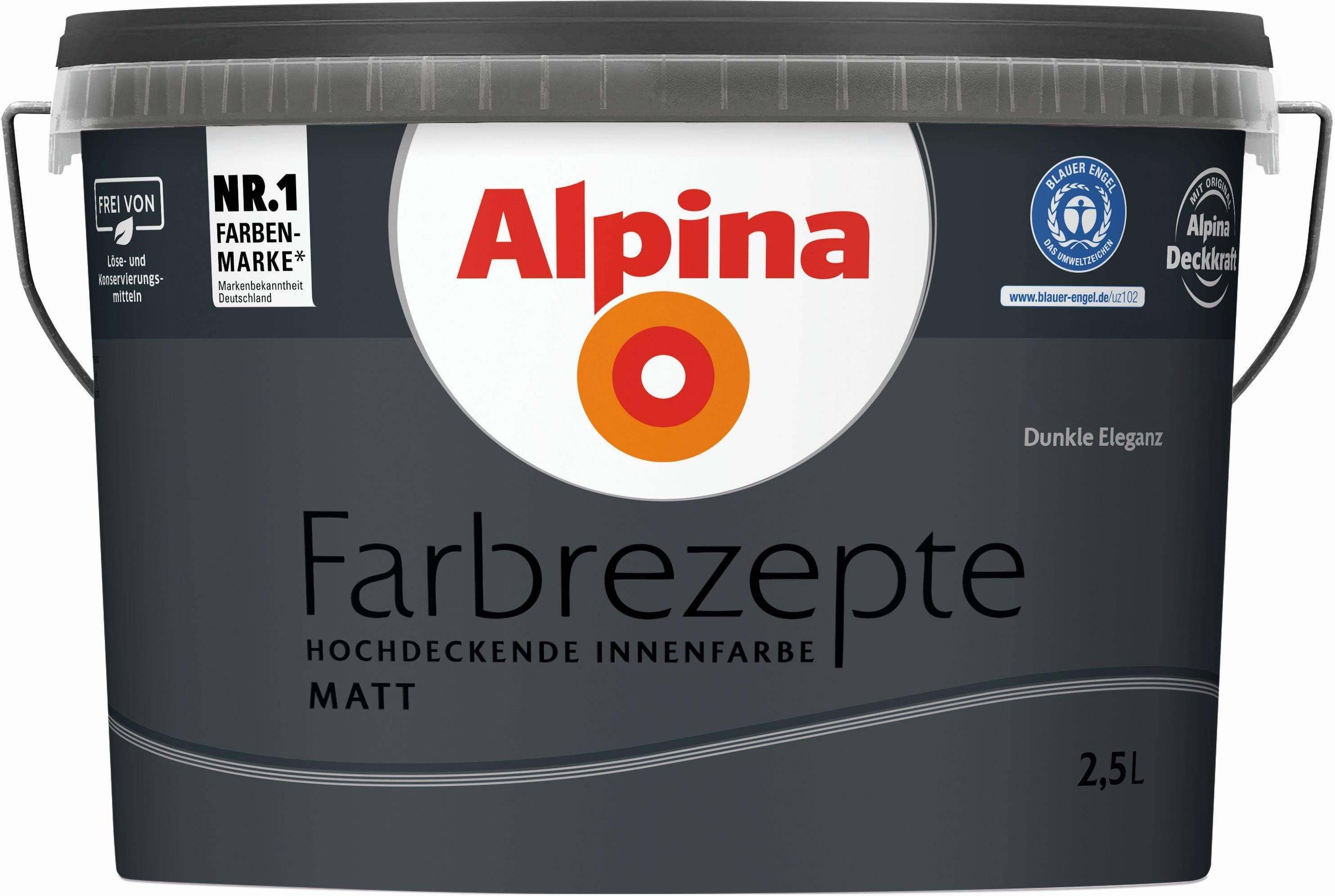 Alpina Farbrezepte on tippklassi matt sisevärv kõikide sisepindade esmakordseks värvimiseks või renoveerimiseks. Alpina Farbrezepte katab enamasti ühe värvikihiga ning kuivab väga kiiresti. Värv on veega vedeldatav, keskkonnasõbralik ja vähese lõhnaga. Pakendi kogus on 2,5 liitrit.