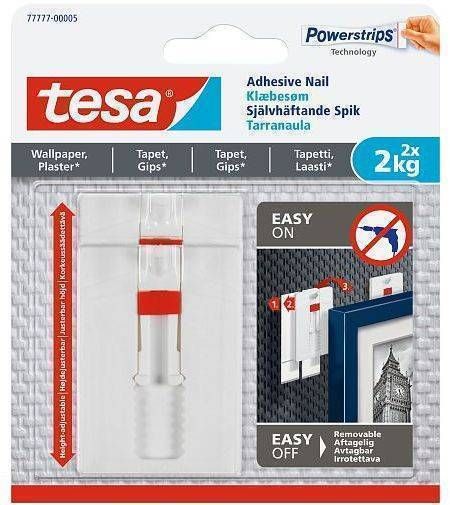 Tesa kahepoolse kleeperibaga liimitav reguleeritava kõrgusega nagi, kannab kuni 2 kg raskust. Sobib kasutamiseks erinevatel ebatasastel aluspindadel muuhulgas ka tapeedil! Nagisid on lihtne paigladada ning see teeb kodu kaunistamise imelihtsaks. Puhastada enne paigaldamist aluspind. Avaldada aluspinnale kleebitud kleepepadja kõikidesse kohtadesse ühtlast survet. Paigaldamisel kleepepadjale avaldada esimesena survet nagi ülaosas nurkadele, seejärel horisonaalselt asetatud pöialdega keskele ning viimaks kõige alumise osa mõlemale nurgale - igas osas hoida survet vähemalt 5 sek. Eemaldamine on veelgi lihtsam kui paigaldamine. Fikseerida ülevalt külgedest nagi ning hoida tirimise ajal paigal - mitte seda vastu aluspinda surudes! Tirida kleeperiba liimivabast otsast otse alla - mitte tirida seinast/pinnast nurga all eemale, vaid otse alla, kuniks nagi vabaneb aluspinna küljest. Nagi saab korduvkasutada varu kleeperibadega.