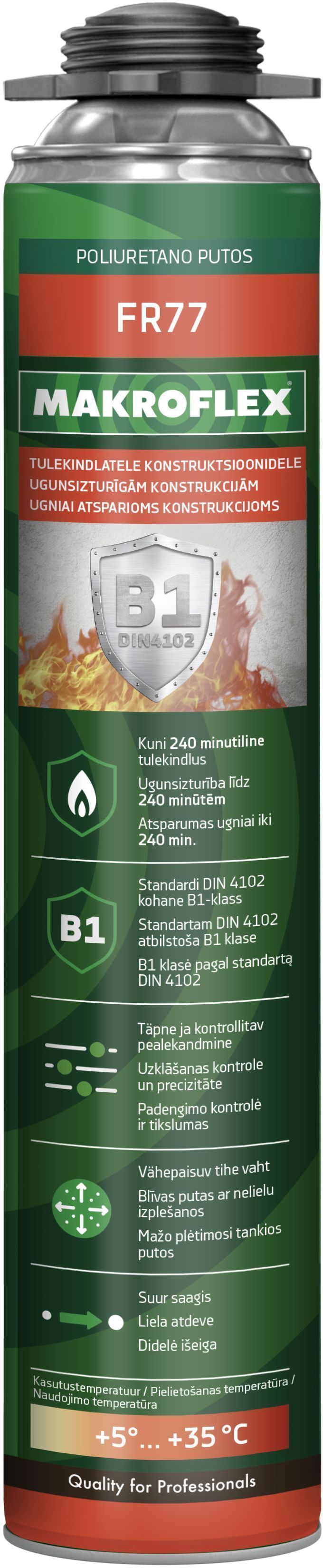 Makroflex FR77 on spetsiaalne madalama tuletundlikkusega püstolivaht kasutamiseks sellistes ehitiste ja konstruktsioonide pikivuukides, millele kehtivad tulekindluse osas erinõuded. Toodet on katsetatud tuldtõkestavate konstruktsioonide lineaarsetes vuukides vastavalt standardile EN 1366-4:2006. Klassifikatsioon vastavalt standardile EN 13501-2:2009.