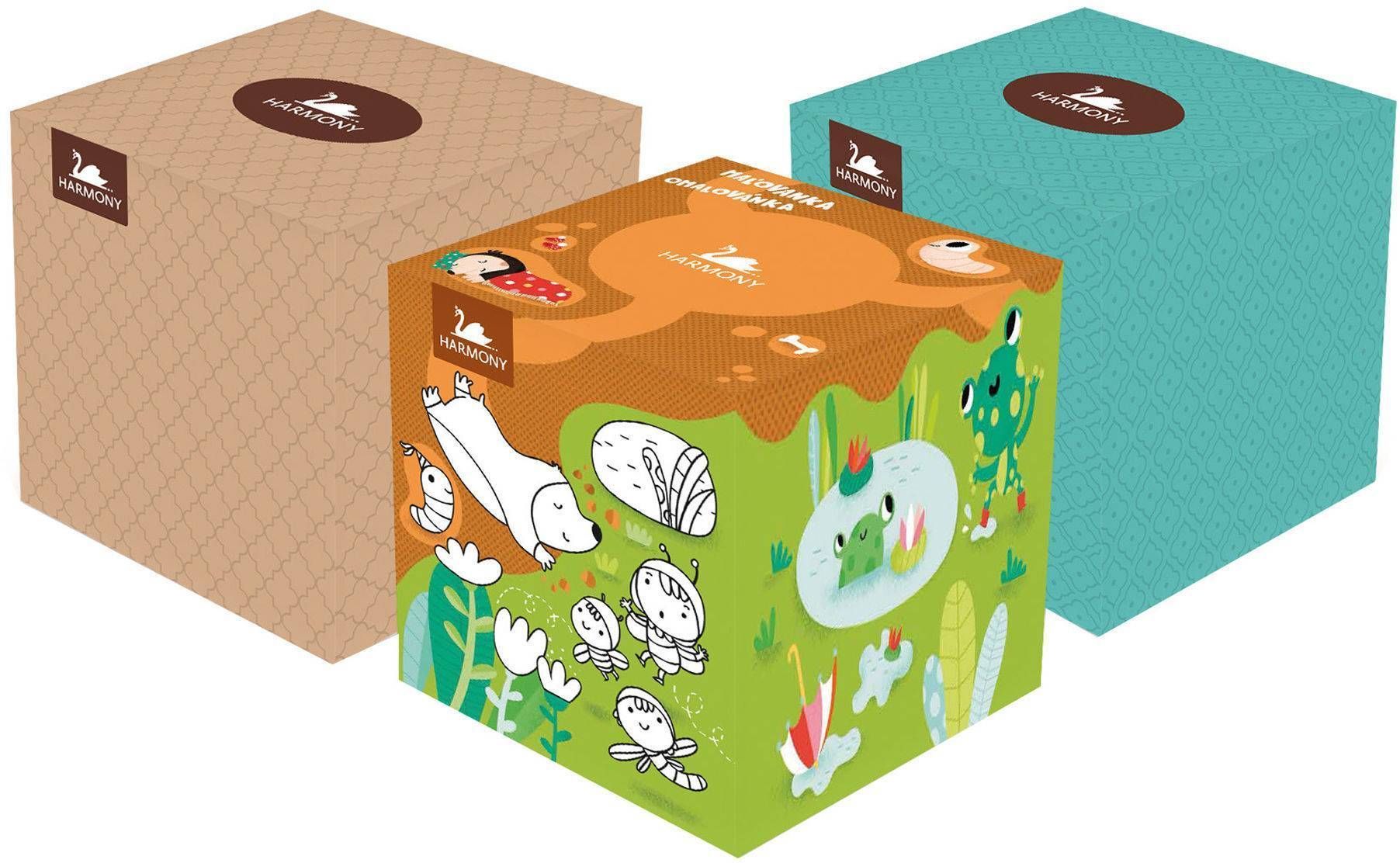 Harmony salvrätikud Cube on 3-kihilised. Pakendis on 60 lehte.
