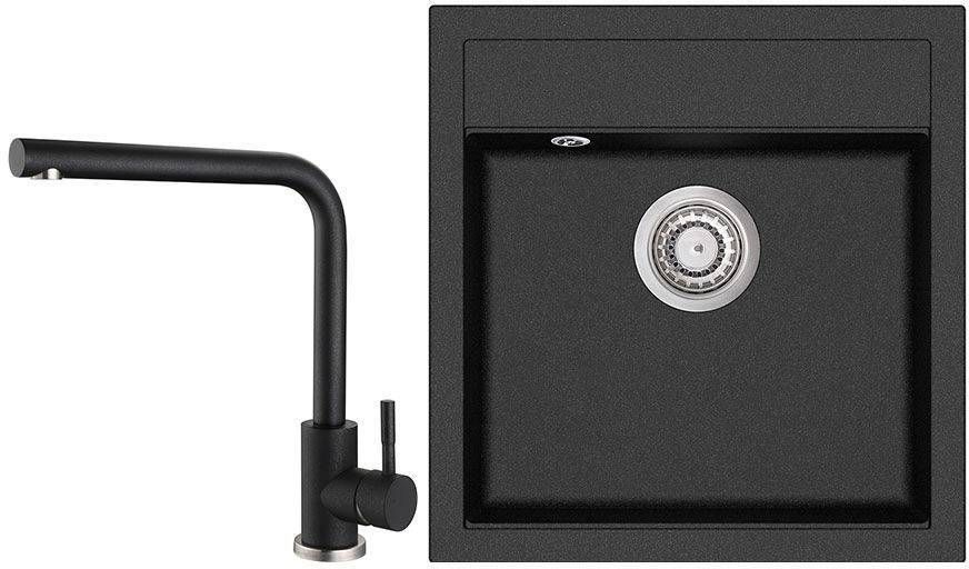 Aquasanita valamu ja segisti komplekt, mis koosneb valamust SQT100 (Bauhofi tootekood: 684619) ja segistist 5553E2, värvitoon black metallic ehk must. Graniitvalamud on valmistatud 80% graniitliivast ja 20% sidusainest. Valamu on mõõtmetega 490 x 510 x 200 mm ja paigaldatakse töötasapinna sisse. Sobib aluskapile miinimum laiusega 50 cm. Valamul on vertikaalne üleool, äravoolu ava on 89 mm. Komplekti kuulub käega avatav äravoolupesa. Valamu on vastupidav temperatuuri kõikumiste suhtes, kriimustus- ja põrutuskindel, ei ima plekke ega lõhnu, ei muuda värvi UV kiirguse mõjul, ei kriibi potte ega panne. Valamul on välja löödav, ette freesitud segistiava.