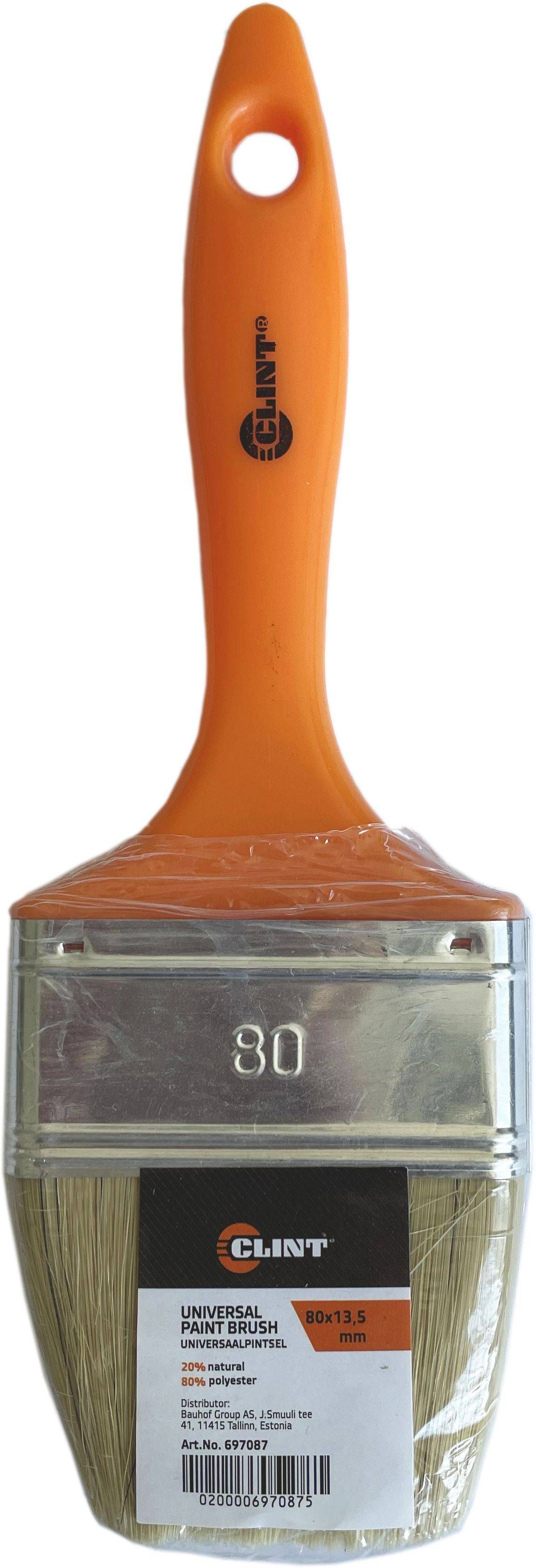 Clint pintsel on laiusega 80 mm. Harjased on 20 % naturaalsed ja 80 % polüesterist.