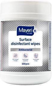Mayeri All-Care desinfitseerivad puhastuslapid on alkoholiga immutatud sünteetilisest materjalist rätikud alkoholi taluvate pindade kiirdesinfektsiooniks. Ei jäta pinnale ebemeid ega muuda pindade visuaalset väljanägemist. Võib kasutada ka toiduga kokkupuutuvate pindade desinfitseerimiseks. Toode sobib kasutamiseks järgnevatel pinnakattematerjalidel: metallid - roostevaba teras, alumiinium, vask ja messing; põrandakattematerjalid - PVC, linoleum, keraamilised plaadid; plastikud; klaaspinnad. Hävitab Gram-positiivseid ja Gram-negatiivseid (sh tuberkuloositekitaja) baktereid ja seeni (Candida Albicans). Desaktiveerib nii ümbrisega (sh HBV, HIV, HCV, Vaccinia, Corona) kui ka ümbriseta viiruseid (Adeno, Rota, Noro). Pakendis 100 tk.