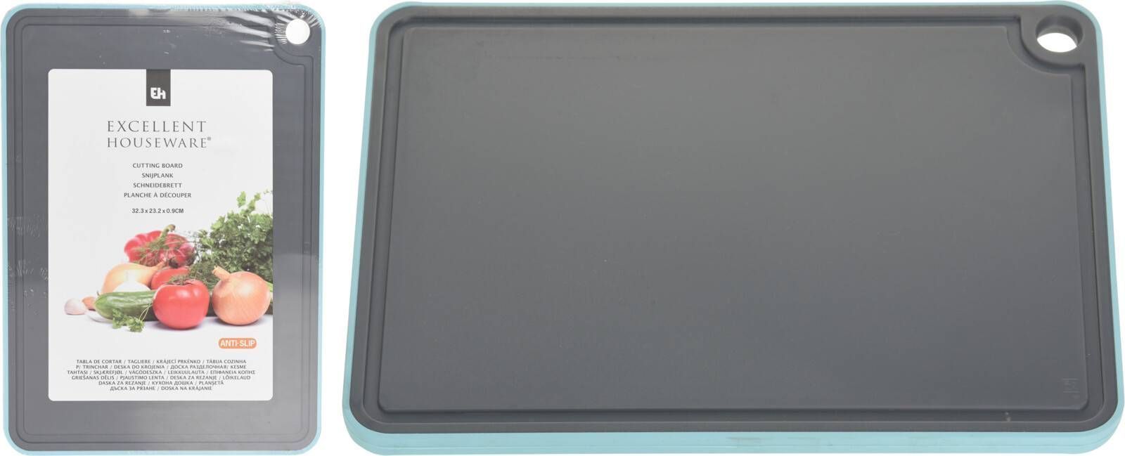 Excellent Houseware lõikelaud on mõõtmetega 32 x 23 cm. Toode on halli värvi.