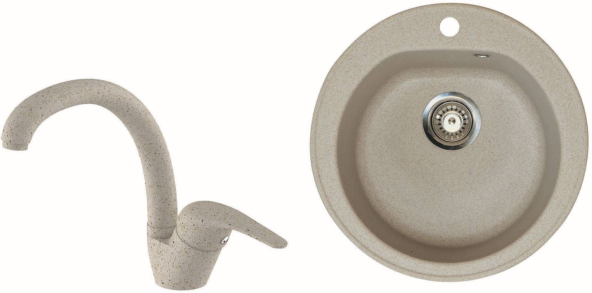 • Köögivalamu on mõõtmetega Ø 510 x 195 mm. • Valmistatud tehisgraniidist. • Sileda viimistlusega. • Äravooluava on 90 mm ja ülevool on vertikaalne. • Komplekti kuuluvad: ülejooksuga sifoon Ø 90, sõelkorviga ja Aqualine sarja kuuluv klassikaline köögisegisti Color pöördtilaga kõrgusega 280 mm, keraamilise sisuga 40 mm kaasas roostevabad survevoolikud 35 cm x 3/8" ja segisti kinnituskomplekt. • Liiva värvi. • 14-päevane tagastusõigus.