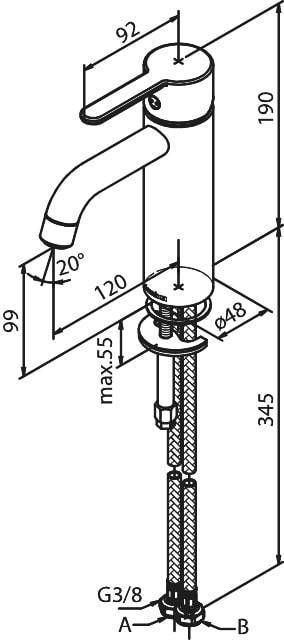 | Segisti ühendused | survevoolikud 3/8" x 38cm 2tk |
