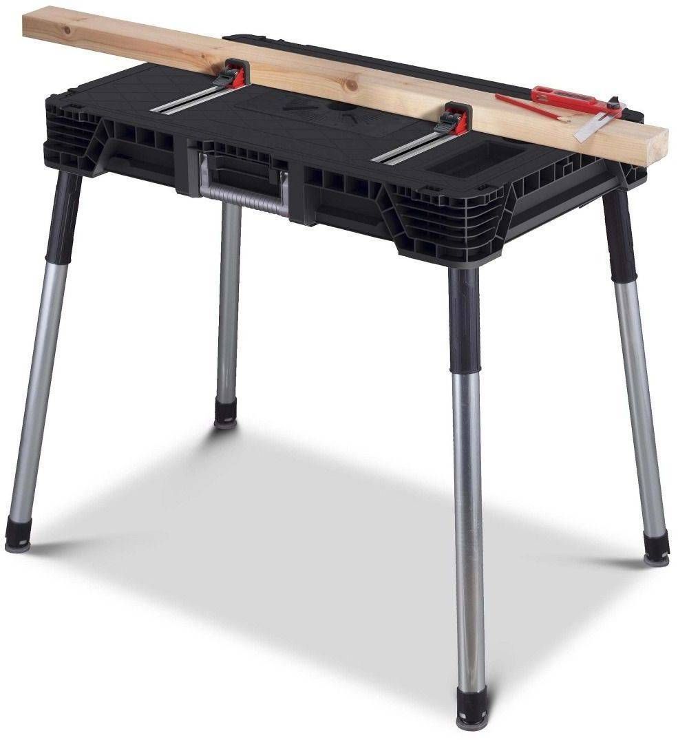 Keter Portable Work Stationi kokkupandavat töölauda on mugav transportida tänu oma kergele konstruktsioonile ja mugavale käepidemele. Kaasas 4 kinnitusklambrit. Tööpingil on integreeritud universaalsed metallist T-rööpad ja sisseehitaud stabilisaator. Laua kandevõime on 453 kg.