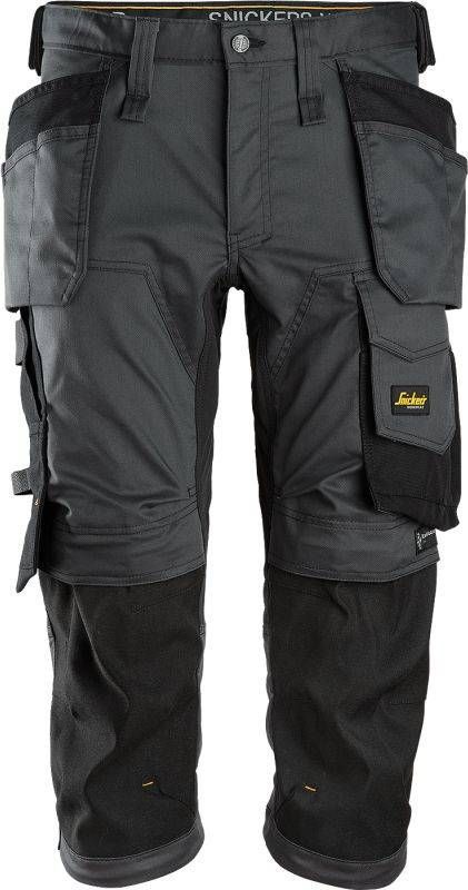 Snickers Allroundwork Pirate tööpüksid. Stretškangast valmistatud kitsalõikelised piraadipüksid on loodud selleks, et tagada sinu igapäevane töömugavus. Eelpainutatud sääred ja materjali valik tagavad liikumisvabaduse, CORDURA®st venivad põlvetugevdused ja säärte otsad annavad vastupidavuse ning KneeGuard™ Pro süsteem kaitseb põlvi. Reguleeritavad sääreotsad tagavad maksimaalse mugavuse ja istuvuse ning ripptaskutes on vajalikud esemed alati käepärast.