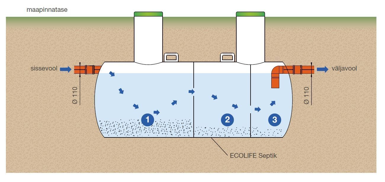 Pipelife Ecolife septik on 3-kambrilise settemahutiga. Settemahuti on ehitatud nii, et vee teekond mahutis oleks võimalikult pikk. See tagab hea puhastusvõime, mis omakorda pikendab septiku imbväljaku tööiga.