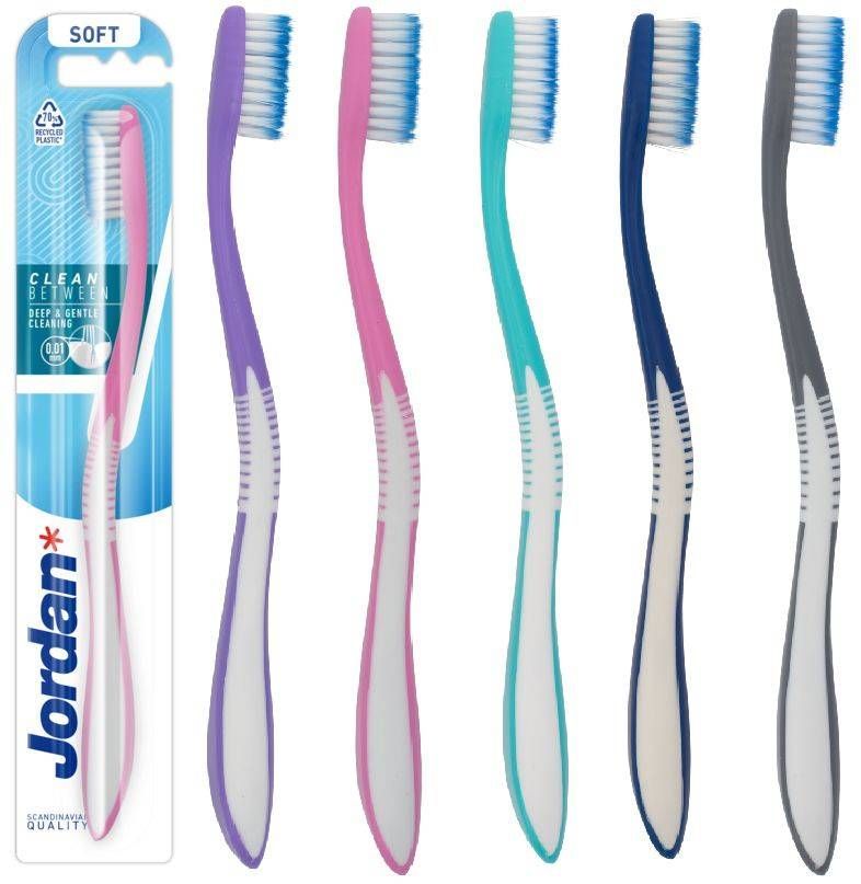 Jordan Clean Between Soft hambaharjal on eriti pehmed ja ülipeened mikrotipp harjased, mis tagavad õrna ja põhjaliku puhastuse.