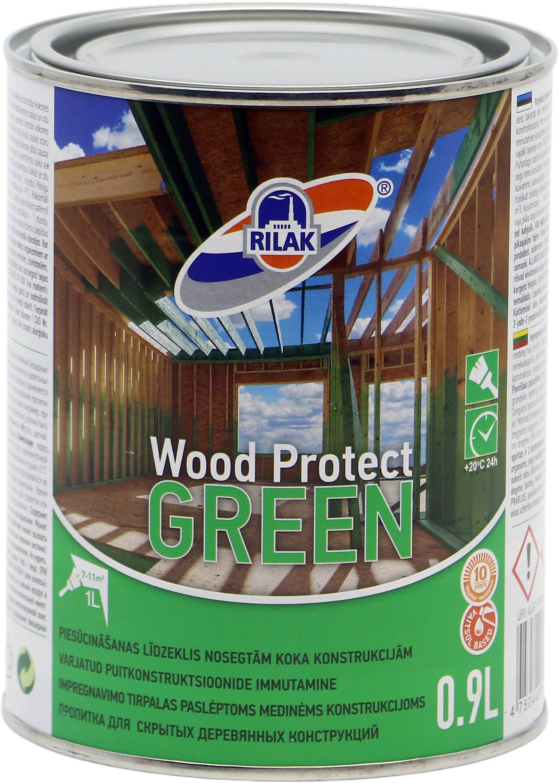 Rilak Wood Protect varjatud puitkonstruktsioonide immutusvahend uuele ja kasutatud puidule. Sisaldab aktiivseid biotsiide. Vajadusel ülevärvitav.