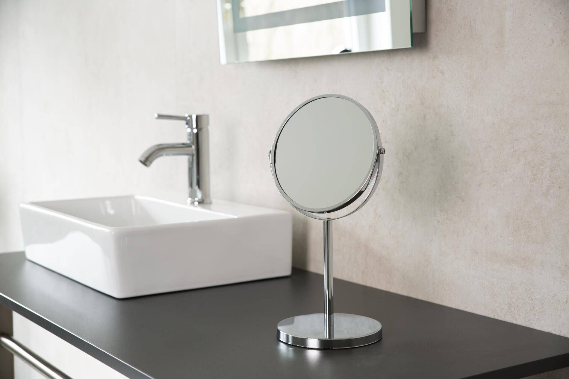 Ridder lauale asetatav kosmeetikapeegel. Toode on metallist raamiga ja läikiv kroom viimistlusega.