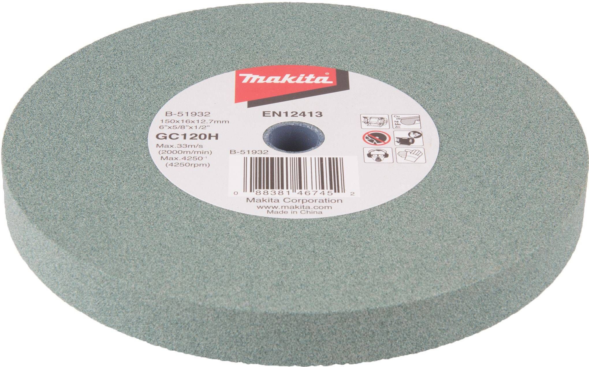 Makita GC120 (CU,NI,MS,ZN) käiakivi, mille läbimõõt on 150 mm, paksus 16 mm ja avasuurus (võlli läbimõõt) 12,7 mm.