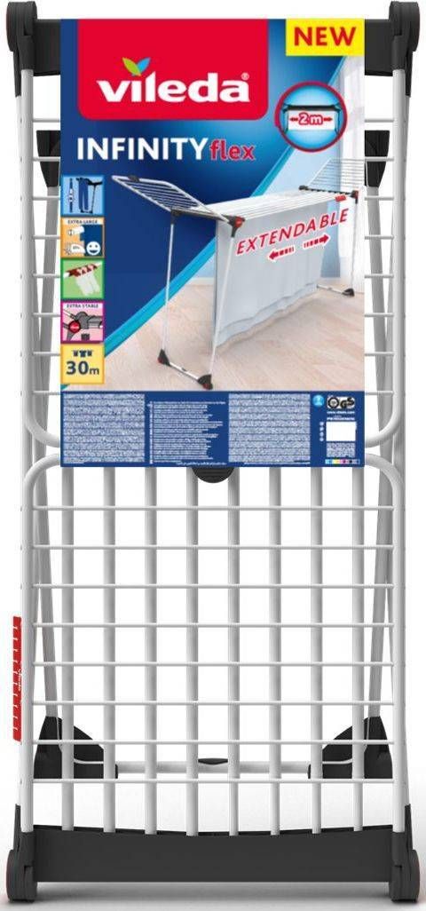 Vileda Infinity pesukuivatusrest on ruumisäästlik ja pikendatavate pesunööridega. Pesurestil on kuivatusnööre kuni 27 m, sokikuivataja ja ühes otsas rattad, tänu millele on resti kerge liigutada. Resti mõõdud avatuna: laius 57 cm, kõrgus 100 cm, pikkus reguleeritav 186 cm – 257 cm. Vastavalt pesunööride reguleeritud pikkusele mahutab 1 - 3 masinatäit puhast pesu.