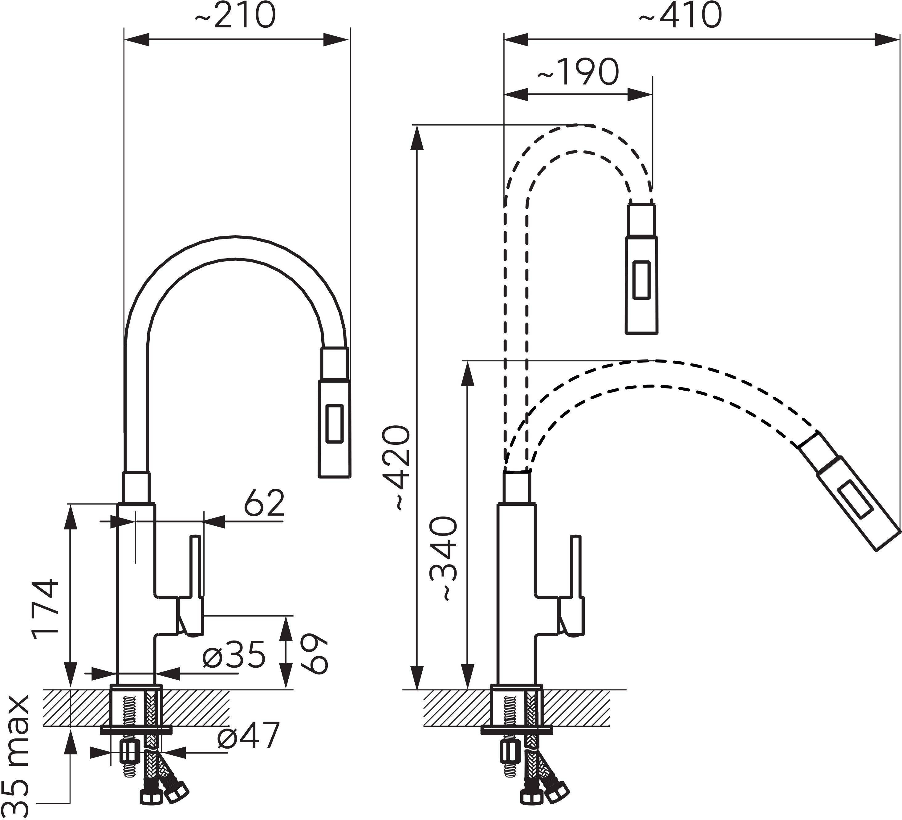 | Segisti ühendused | Survevoolikud 3/8" 40cm 2tk |