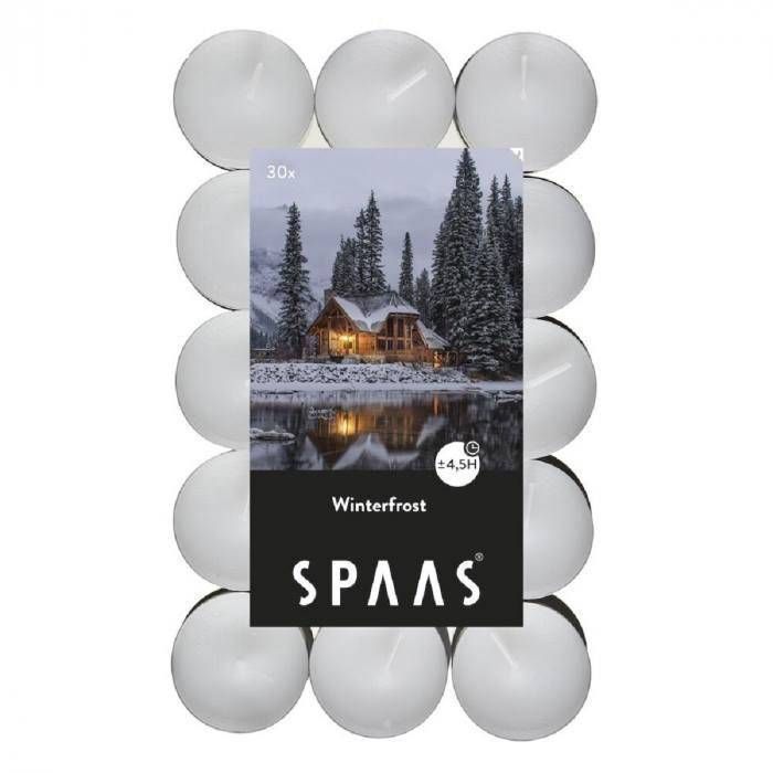 Spaas lõhnateeküünal on valget värvi edelweissi ja talvevilla lõhnaline, tekitades mõnusat jõuluhõngu. Küünla põlemisaeg on 4,5 h ja pakis on 30 tk.