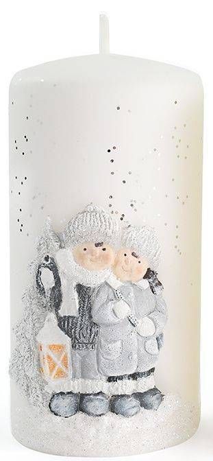 Winter Fairytale valge küünal, mille mõõtmed on 7 x 14 cm.
