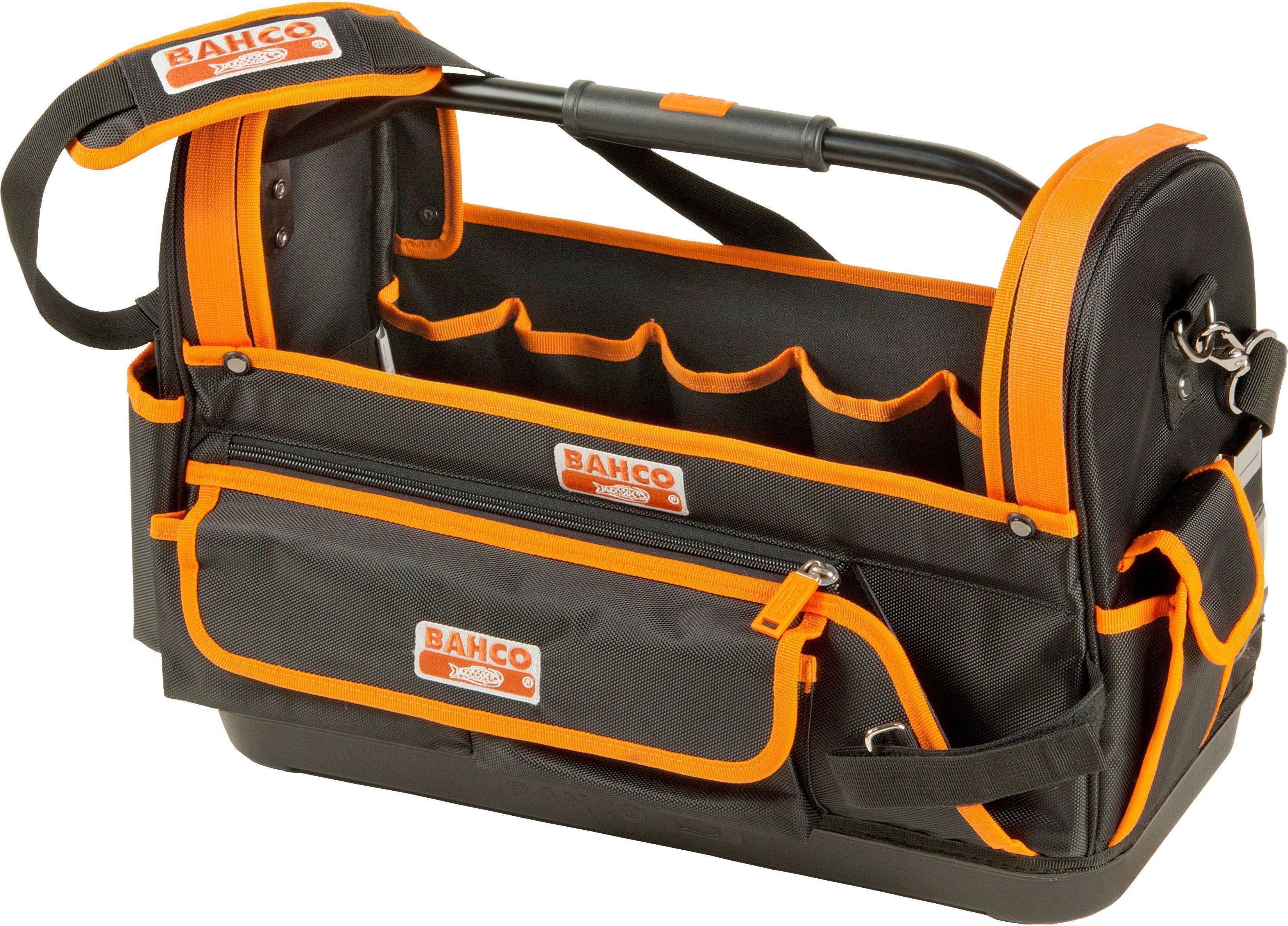 Bahco 19" avatud tekstiilist tööriistakott on mõõtmetega 47 x 23 x 35,5 cm. Valmistatud Denier 600 ja 1680 polüesterkangaste kombinatsioonist. Täiesti veekindel kõva polüpropüleenist põhi kaitseb kotti ja on lihtsasti puhastatav. Erikonstruktsioon arvukate lahtritega tagab suure hoiustamismahu. Kotil on vesiloodi reguleeritavad kinnitusrihmad, spetsiaalne tasku käsisae jaoks, mõõdulindi-, kaardi- ja telefonihoidiku sektsioon, polsterdatud klõpsreguleerimisega õlarihm. Kummikihiga kaetud pehme käepide tagab mugava haarde ja isoleerib külma materjali puudutamisel. PVC-ülekattega tõmblukud on abiks lihtsaks käsitsemiseks ka kinnastega.