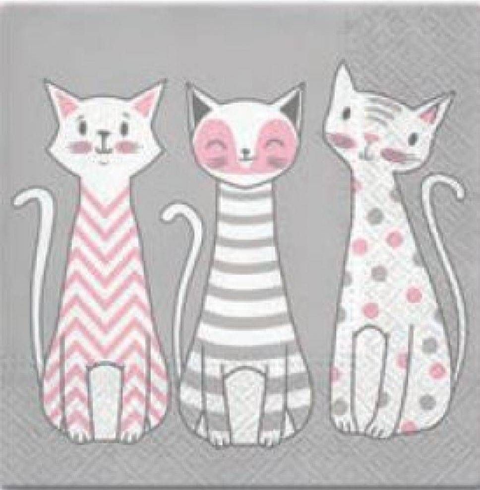 Paw Glam Cats salvrätik mõõtmetega 33 x 33 cm. Pakendis 20 tk.