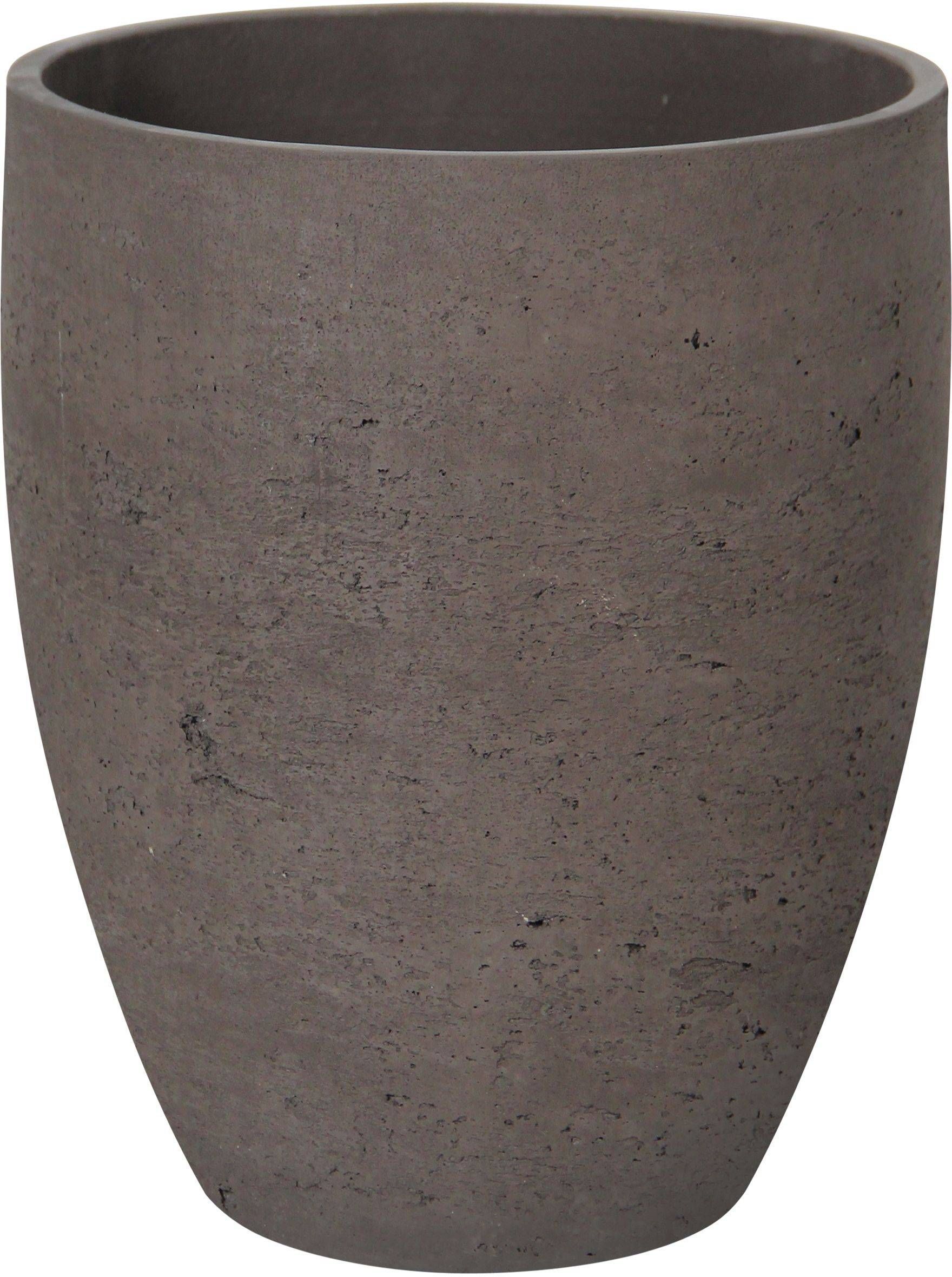 Ro Cement tumepruun ümbrispott mõõtmetega 27 x 27 x 33 cm.