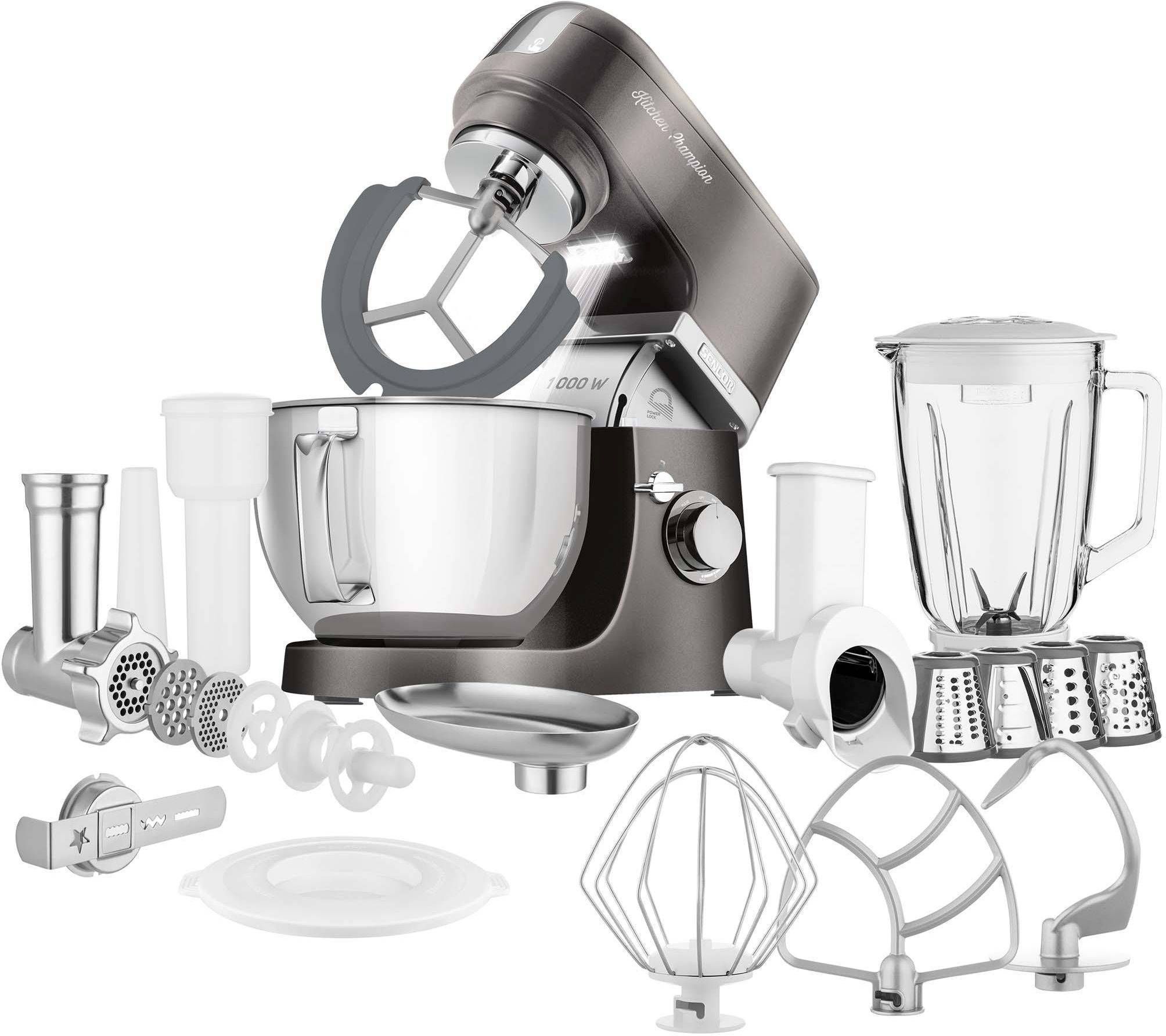 • Tugeva metallkorpuse ja metallist võimas 1000 W köögikombain. • Sujuv käivitamine, 8 kiirust ja impulssfunktsioon. • 4,5 L kauss, 3 tarvikut sõtkumiseks, kloppimiseks ja taina valmistamiseks, 1,5 L mikserkann. • Hakklihamasinal on vahetatavad hakkimiskettad ning otsikud vorstikeste täitmiseks või kebabide valmistamiseks. • 5 vahetatavat lisaseadet. • 14-päevane tagastusõigus.