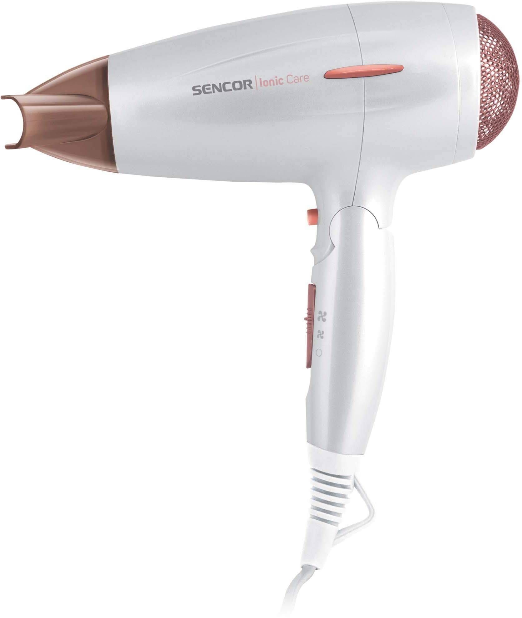 Sencor SHD7200GD föön võimsusega 2000 W. Kokkupandava käepidemega kompaktsel föönil on pikaealine DC mootor, külm õhk soengu fikseerimiseks ja viimistlemiseks, 3 temperatuuri, 2 võimsust, riputusaas, ülekuumenemiskaitse, kontsentraator ja difuuser. Ioniseerimisfunktsioon toodab negatiivseid ioone, mis tagab siidisemad ja läikivamad juuksed, vältides nende kahusust, võimaldab kiiremat kuivamist, vähendab staatilist elektrit, kaitsevad juukseid kahjustuste eest. Toitejuhtme pikkus on 1,8 meetrit.