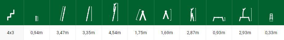 Clint lükandredel, millel on tugev alumiiniumkonstruktsioon ja 4 x 3 astet. Redeli kõrgus on 1,69 m ja kogukõrgus 3,35 m. Maksimaalne kandevõime on kuni 150 kg.