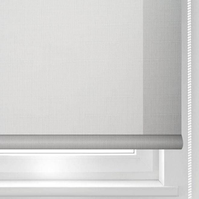 Dekorika valge ruloo. Mõõtmed on 100 x 170 cm.