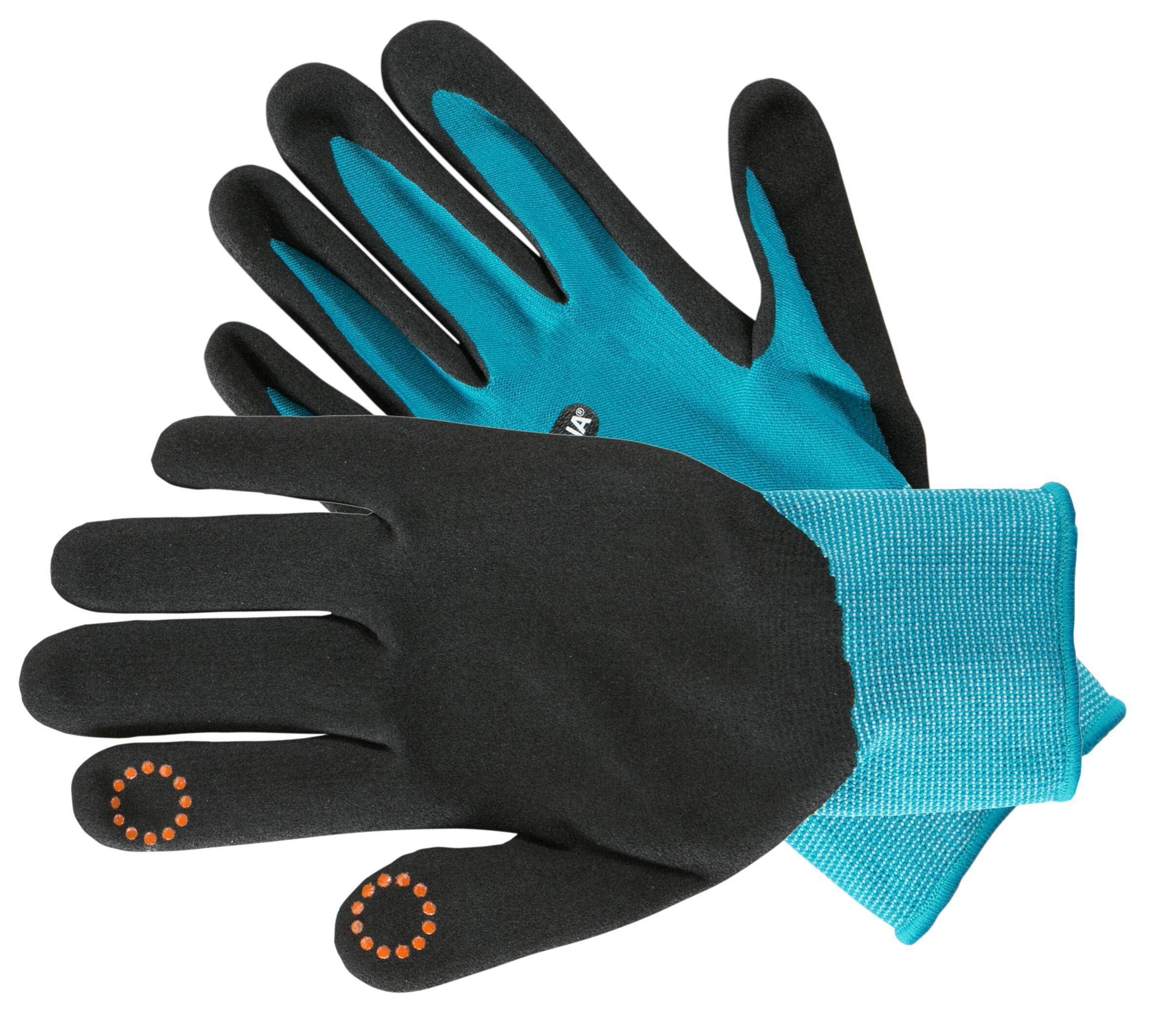 Gardena suuruses S istutus- ja mullakinnas on ideaalne kaaslane aiapeenarde istutamiseks, mulla kobestamiseks või umbrohu eemaldamiseks. Niiskus mängib sageli rolli, eriti mullaga töötamisel. Teil on hea meel kuulda, et teid kaitseb niiskuse eest kinda peopesal olev nitriilkate. S suuruses töökinnast iseloomustab selle optimaalne sobivus. Tänu manseti ja käe tagaküljel olevale painduvale materjalile saate istutamise ja kaevamise ajal mugavalt töötada. Lisaks on istutus- ja mullakinnas hingav, nii et isegi raskemate aiatööde tegemisel ei lähe teie käed higiseks. Töö ajal võivad tekkida küsimused ja soovite kasutada oma nutitelefoni. Smart Mobile Touch funktsioon pöidlal ja nimetissõrmel, muudab istutuskinnastega nutitelefoni ühilduvaks ja võimaldab puutetundlikku ekraani juhtida kindaid eemaldamata. Lisaks sellele on istutus- ja mullakinnale omistatud Oeko-Tex® Standard 100 sertifikaat ning seetõttu on kindad kahjulikest ainetest vaba.