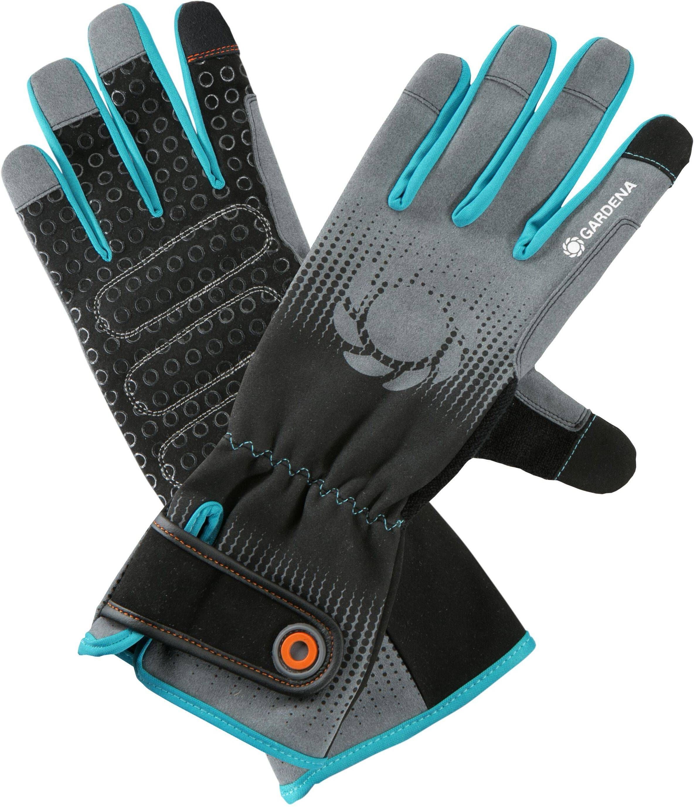 Gardena M suuruses roosikindad. Kindad on toodetud pika randmeosaga, millel on reguleeritav randmekinnitus. See kombinatsioon kaitseb usaldusväärselt randmeosa ja alumisi käsivarsi. Lisaks on eriti tundlikud kehaosad nagu sõrmed ja peopesa kaitstud aramiidmaterjaliga. See materjal on torkekindel, mistõttu okkalised taimed pole enam probleemiks. Täpselt sama praktiline: nutitelefoni või tahvelarvuti puutetundliku ekraani hõlpsaks kasutamiseks saate aiakinnast kasutada pöidla ja nimetissõrme funktsiooniga Mobile Touch. Väsitav kinnaste eemaldamine, et kasutada nutitelefoni, on nutitelefoni toega kindaga minevik. Roosikinnastel on veel üks ouline omadus see, et see mitte ainult ei kaitse teid, vaid omab ka Oeko-Tex® standardit 100 ja on seetõttu kahjulike ainete vaba ning keskkonnasäästlik.
