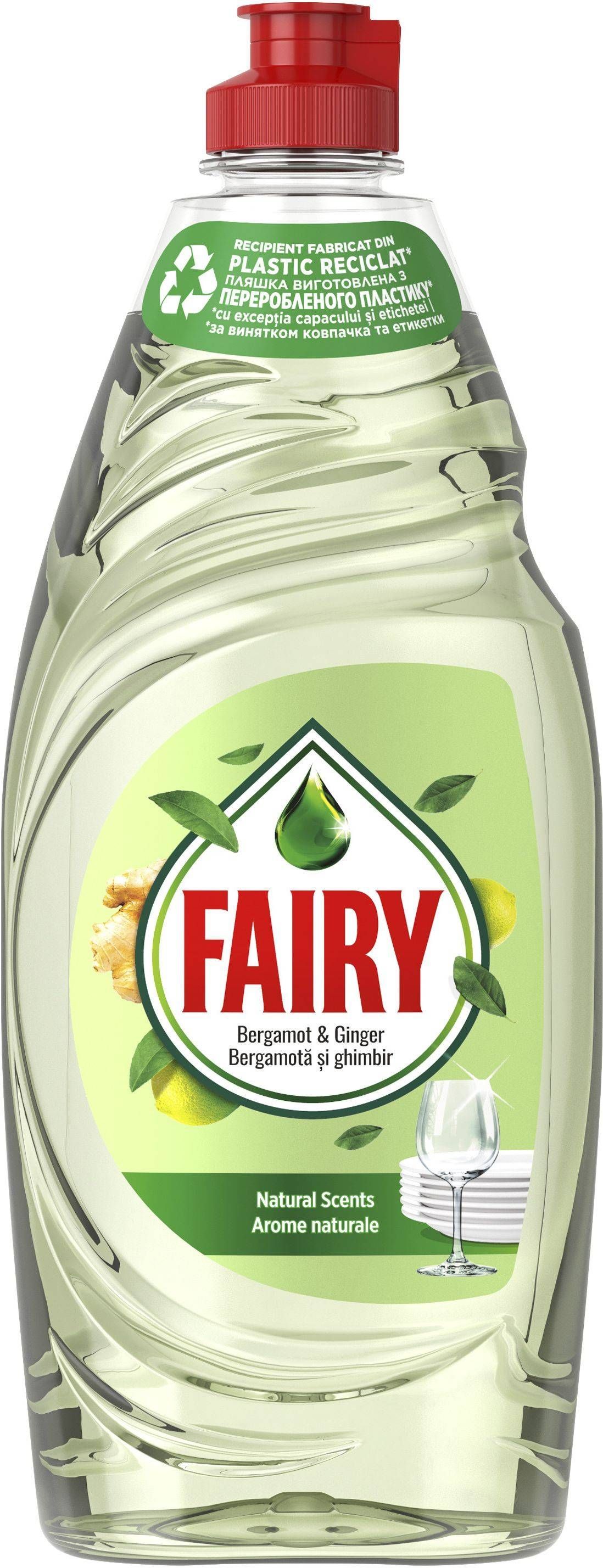 Fairy Naturals nõudepesuvahend pakub Fairyle omast nõude puhastusvõimsust ja 100% looduslikku lõhna bergamotiga Itaaliast Calabria maakonnast ja ingveriga. Koostis on saanud Skin Health Alliance’i dermatoloogilise heakskiidu. Pudel (v.a kork ja silt) on valmistatud 100% taaskasutatud plastist. Pakendis 650 ml.