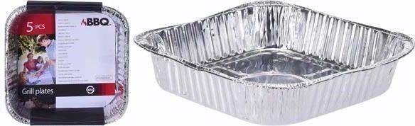 BBQ grillialus mõõtmetega 20,5 x 20,5 x 4,6 cm. Pakendis 5 tk.
