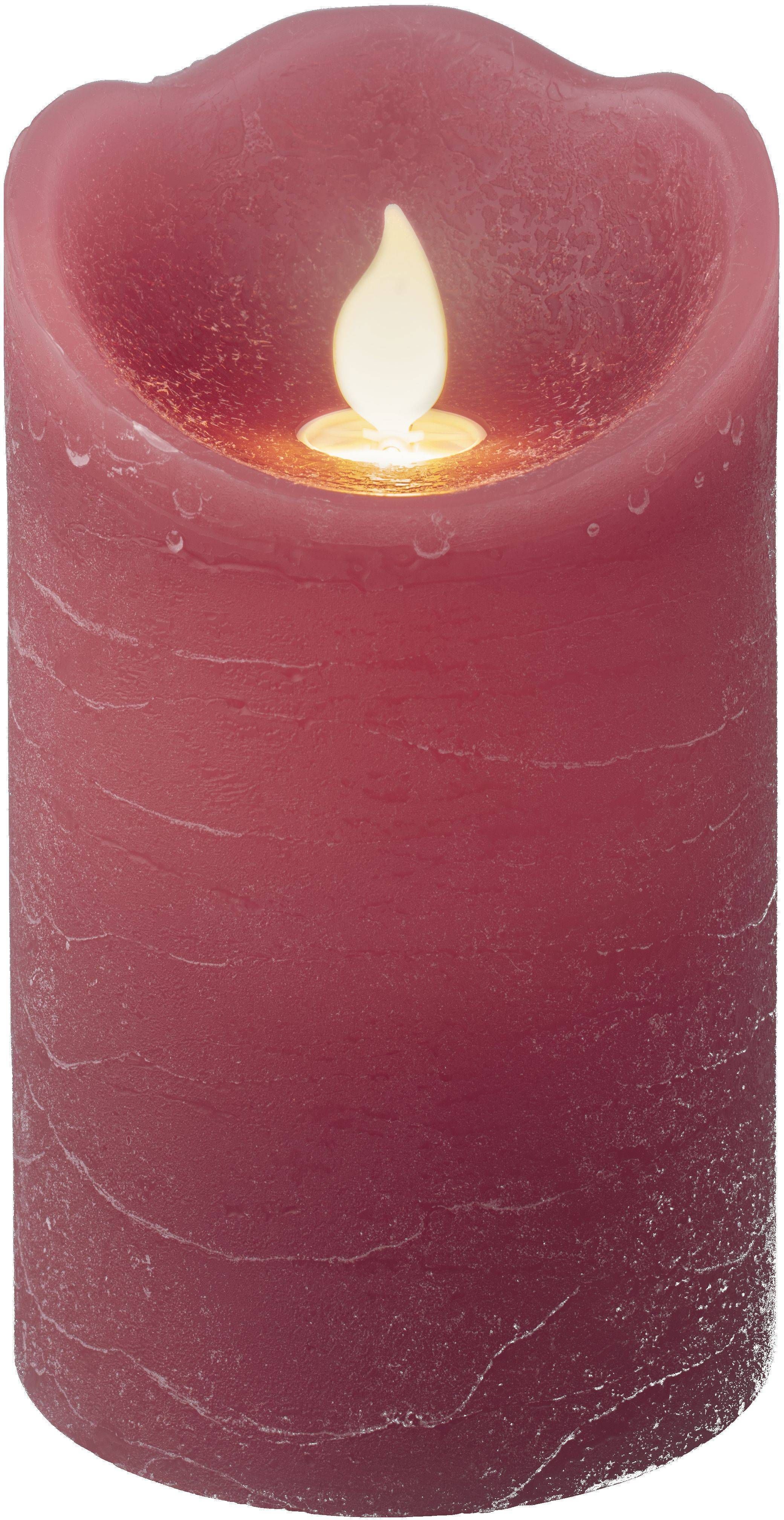 Lumineo LED-küünal. Mõõtmed on 7,7 x 7,5 x 12,5 cm. Punane.