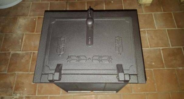 Praeahi malmist. Mõõtmed on 230 x 320 x 460 mm. Uks avaneb alla.