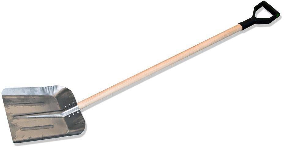 Big kühvel. Alumiiniumist pea, puidust vars, plastikust käepide.