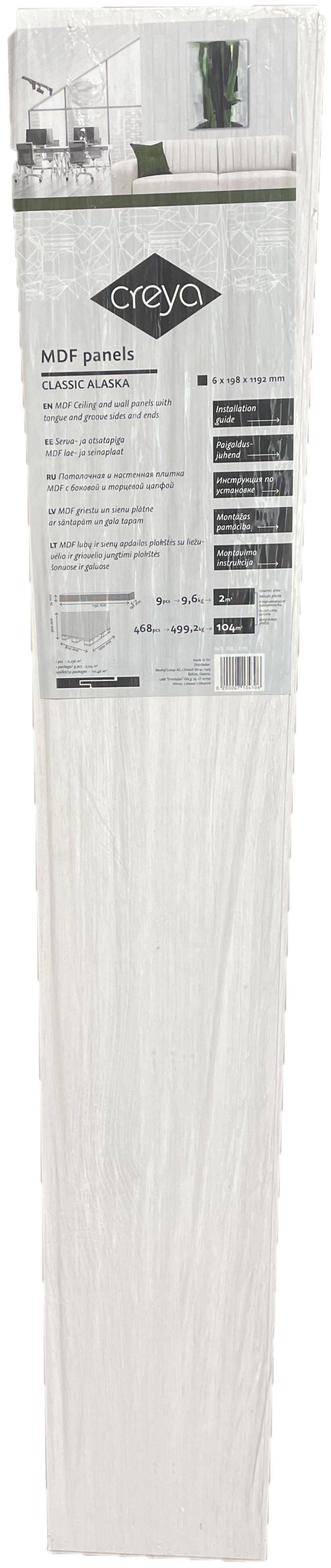 Creya laeplaat Classic Alaska. Mõõtmed on 198 x 1192 mm ja paksus 6 mm. Pakendis on 2,12 m².