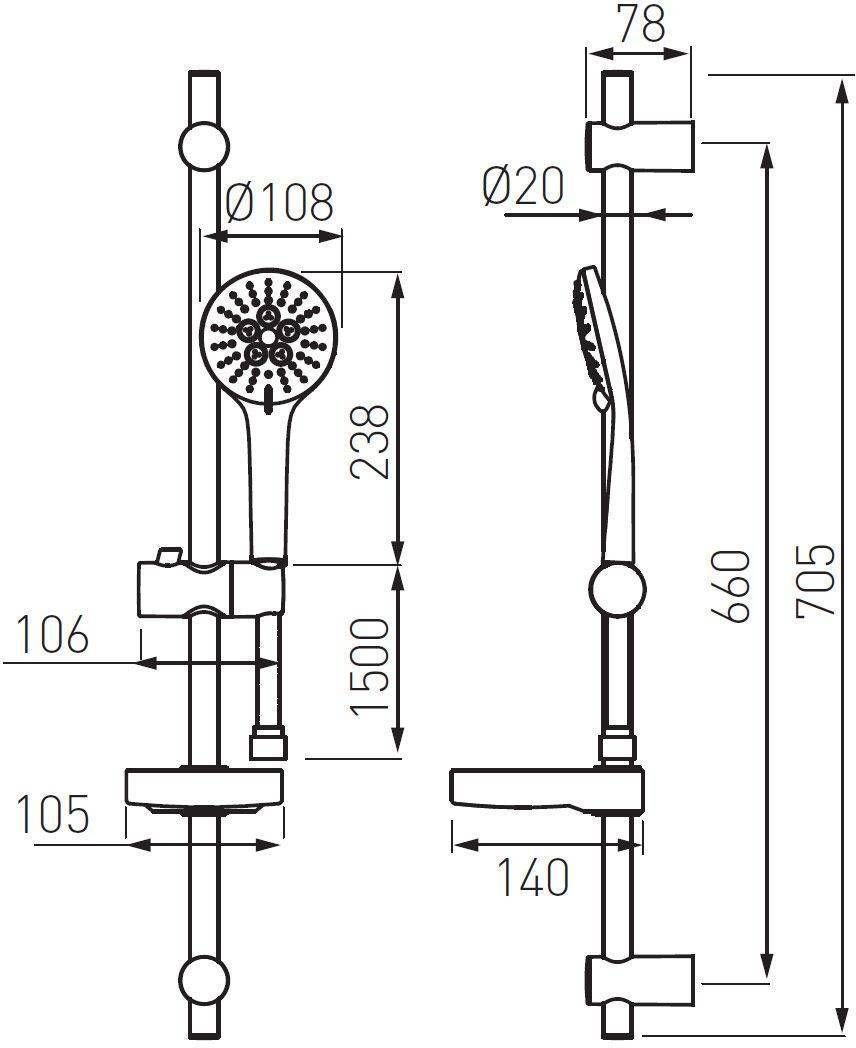 | Komplekti kuulub | käsiduši otsik; dušilift; liugurhoidik; dušivoolik; seebialus |