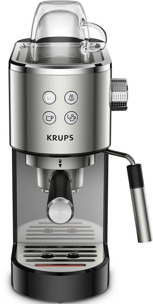 Krups espressomasin Steam&Pump XP442C11. Masin soojeneb kiirelt, sellel on eemaldatav tilkumisalus, elektrooniline temperatuuri reguleerimine, patjade kasutamise võimalus ja automaatne väljalülitus 30 minut möödudes.