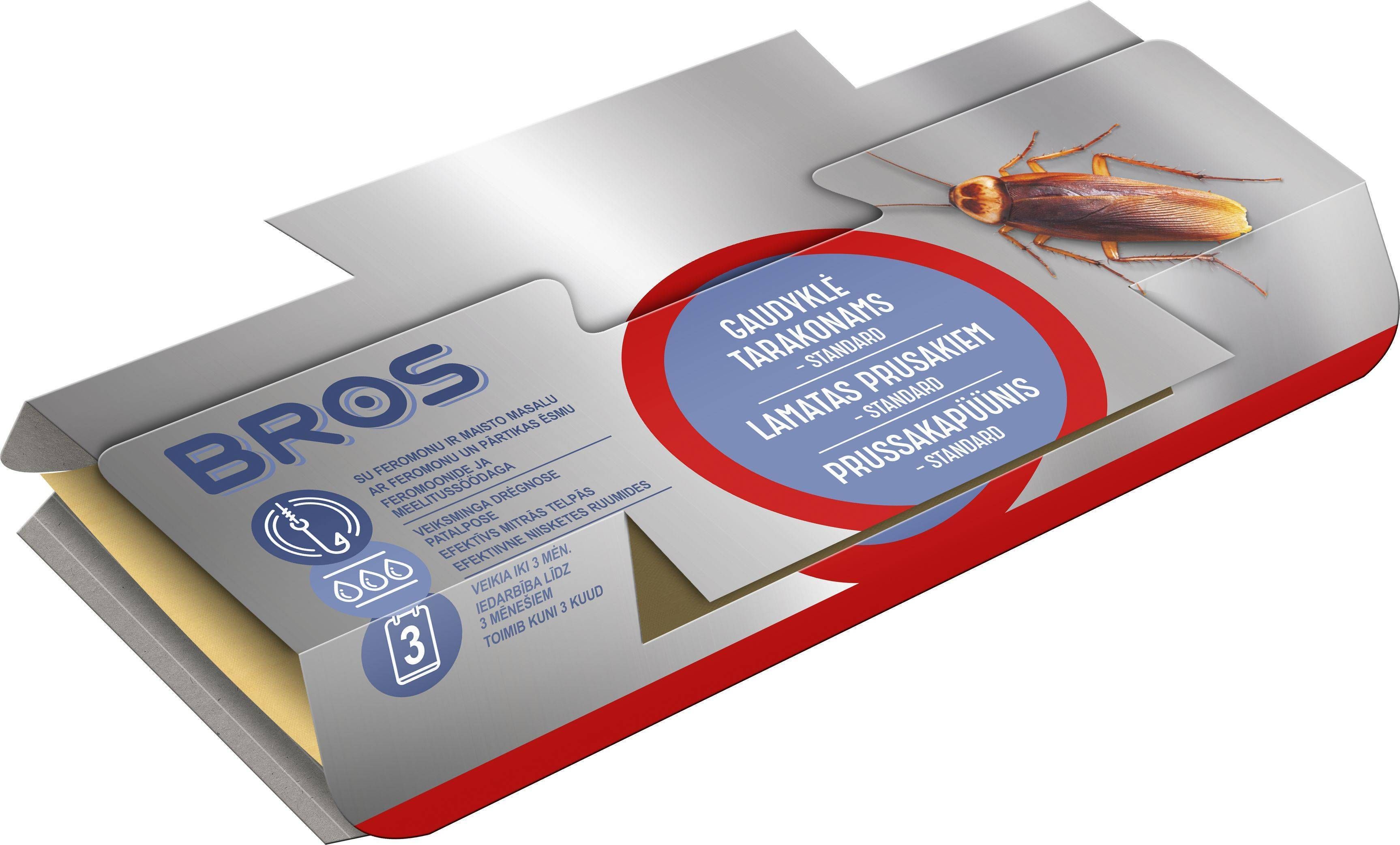 Bros feromoonpüünis roomavatele/prussakatele Feromox. Tänu spetsiaalsele liimainele, mida on rikastatud meelitusainega, püüab see efektiivselt prussakaid, saksa prussakaid ja teisi roomavaid putukaid. Liimaine spetsiaalne koostis tagab püünise efektiivsuse isegi niisketes ruumides kuni 4 kuud alates püünise üles panemisest. Toodet võib kasutada tubades, kus viibivad lapsed, haiged ja allergilised inimesed.