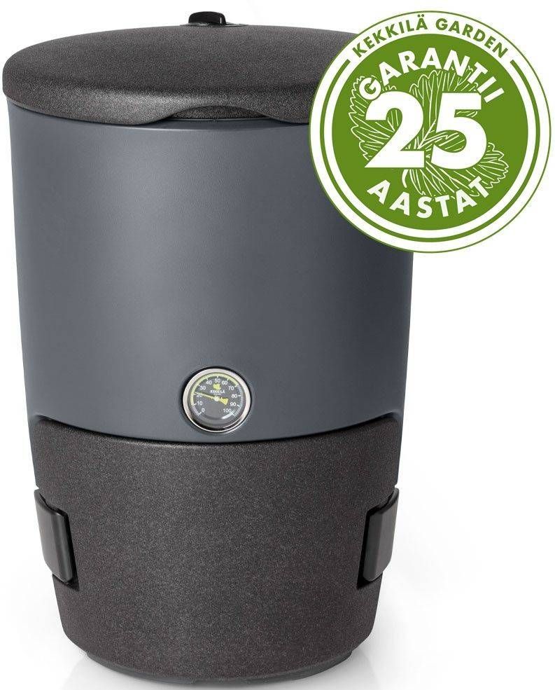 Kekkilä avar ja stiilne termokomposter aastaringseks kompostimiseks. Kodukompostri suur kaas ja tühjendusluuk tagavad kasutusmugavuse. Lihtne kasutada ja lihtne tühjendada. Ergonoomiline. Materjalid on kerged, vastupidavad ja soojust hoidvad. Kodukompostril on uus ümara kujuga disain, mis võimaldab ühtlaselt soojust jaotada. Hoolimata suurusest on kompostri kaas ja luuk kergekaalulised ja kergesti avatavad ning sulguvad. UV-kaitstud korpus ja paks isolatsioon muudavad selle funktsionaalseks ja vastupidavaks. Põhja kallutamisel suunatakse vedelikud kompostrist välja. Mahutavus on 230 liitrit.