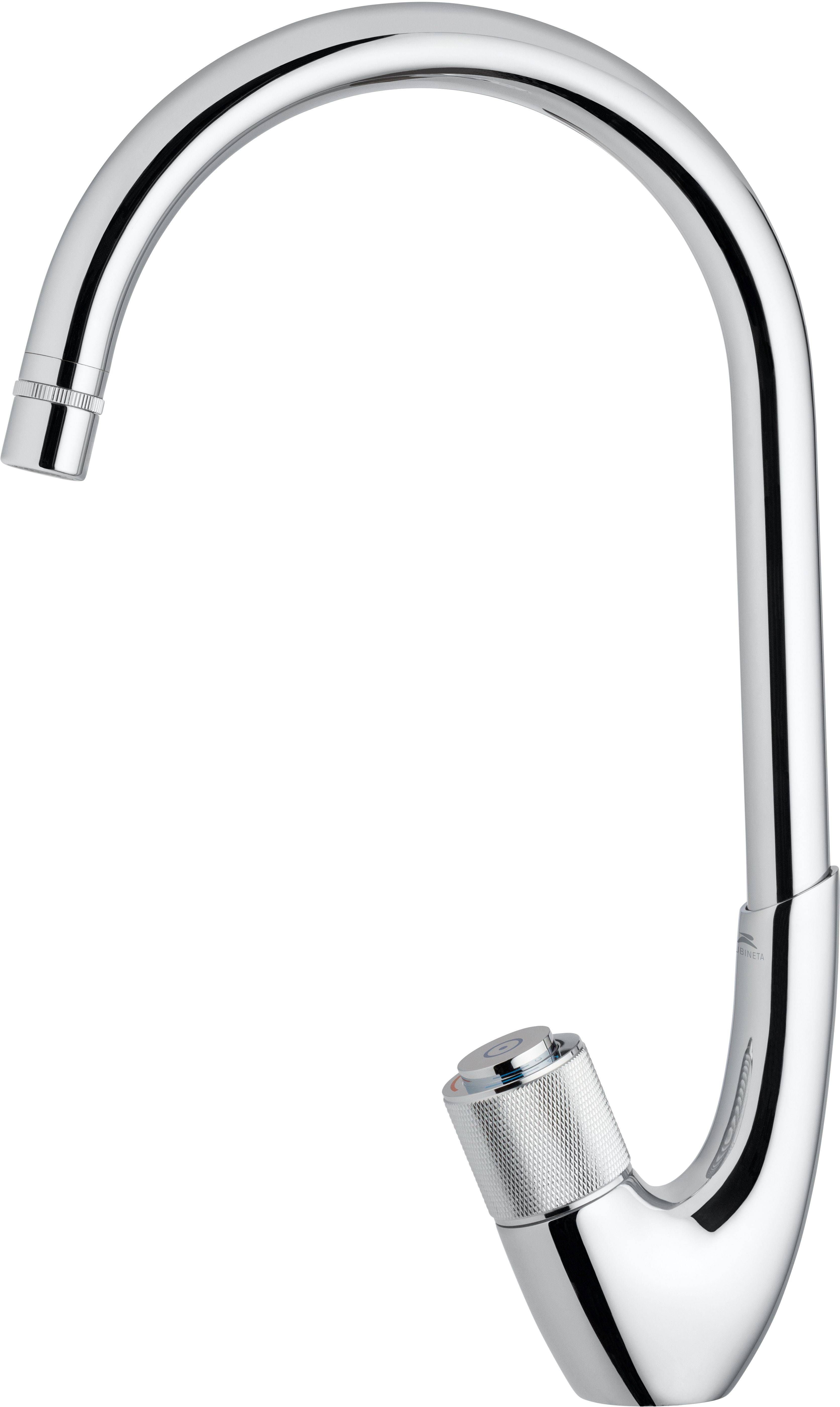 Rubineta köögisegisti Swan-33 lülitiga. Veevool avatakse nupuvajutusega ja temperatuuri valitakse nupu pööramisega. Voolukiirus on käsitsi reguleeritav 4 – 10 l/min pöörates jooksutoru otsikut. Keraamiline 35 mm tööelement on-off nupuga. Kroomviimistlus.