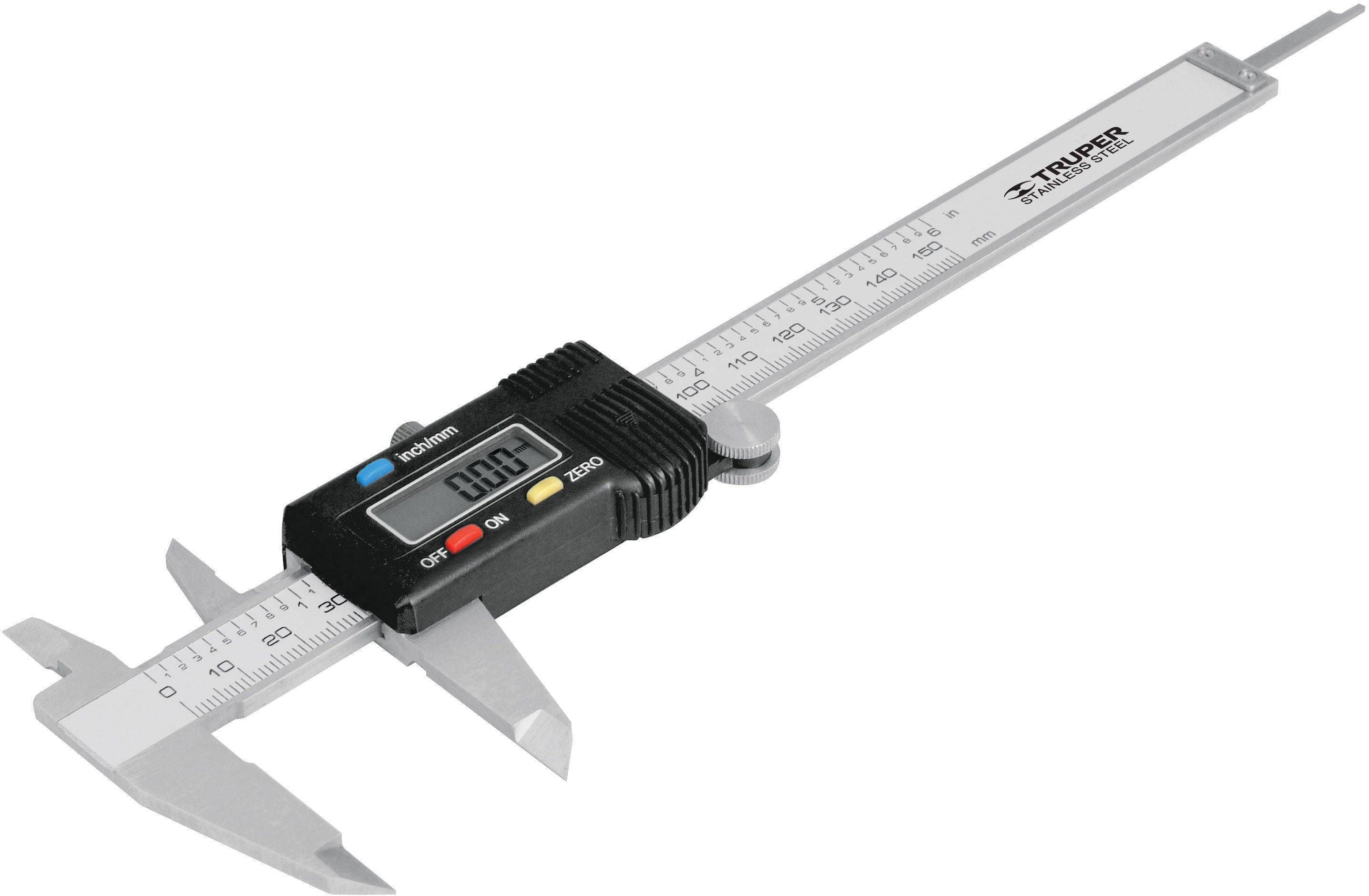 Truper digitaalne nihik 150 mm. Täpsus 0,01 mm. Valmistatud roostevabast terasest, loetav millimeetrites ja tollides. Kasutab 1 LR44 akut.