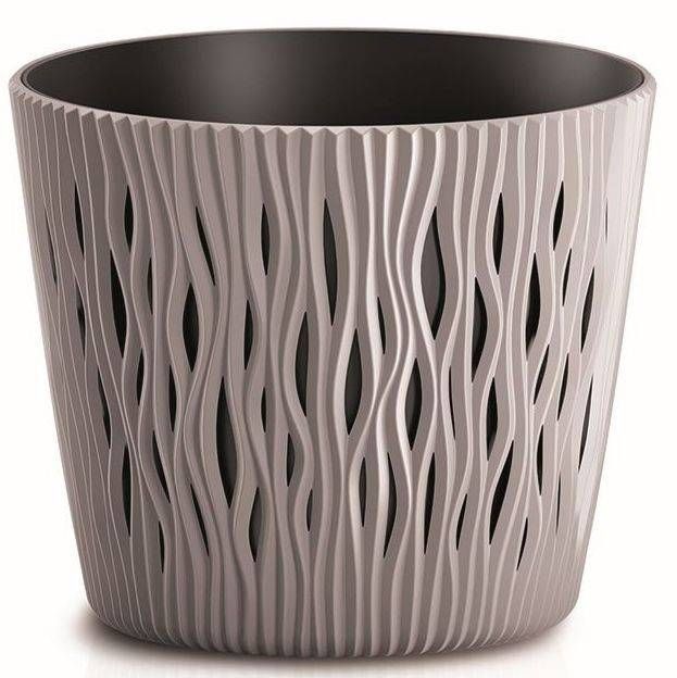 Prosperplast lillepott Sandy Round, mokka. Mõõtmed on 26,2 x 26,2 x 22,2 cm.