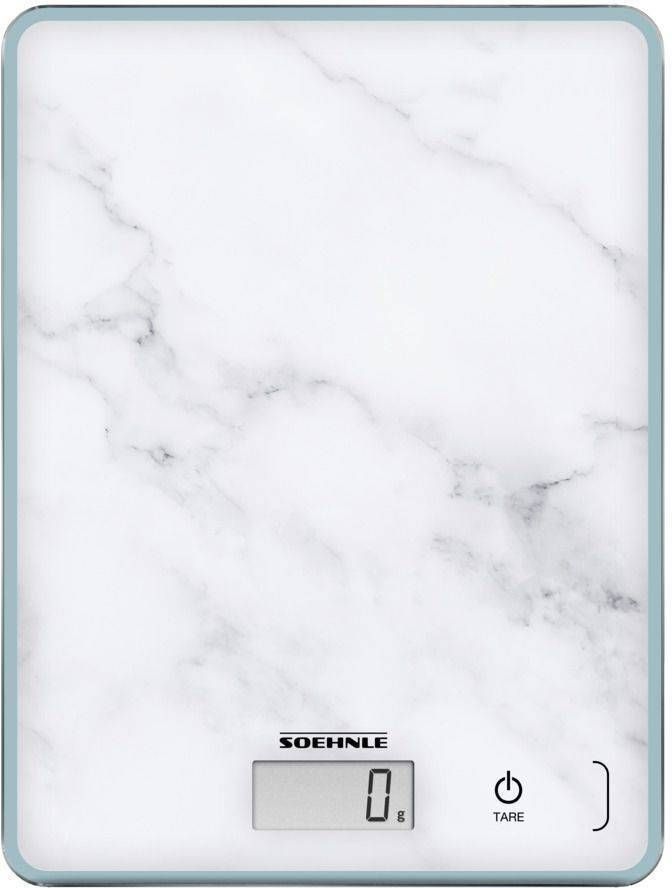 Soehnle köögikaal Page Compact 300 on kauni loodusliku marmori efektiga, mis sobib igapäevaseks kasutamiseks. Ruumisäästlik, õhuke ja kompaktne disain. Maksimaalne kaal 5 kg, kaalumistäpsus 1 g. Selge ja hästi loetav LCD displei, numbrite kõrgus 12 mm. Puutetundlik ekraan reageerib ka kergetele vajutustele. Puuduvad eenduvad nupud, lihtne puhastada ja hügieeniline. Kaalu jalgadel on spetsiaalne nakkumisvastane kate, mis muudab kasutamise turvaliseks. Praktiline taarafunktsioon võimaldab mitmed koostisosad kaaluda ühte anumasse. Automaatne väljalülitus. Toode on varustatud praktilise riputusaasaga, mis võimaldab selle ruumisäästlikku hoiustamist. Toode on koheselt kasutusvalmis, patareid kuuluvad komplekti. Patareide kaas on kruvikinnitusega, turvaline kasutamiseks ka lastele.