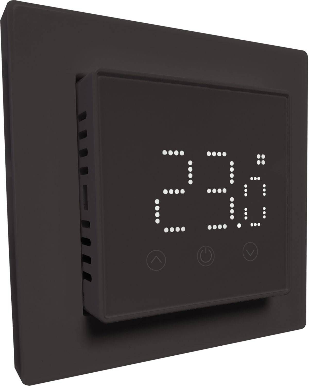 Heber puutetundlik termostaat HT-155B. Ruumi- ja põrandaandur. Sobib nii elektrilisele kui vesipõrandaküttele. 16 A, 220 V. Termostaat on süvispaigaldatav. Keskplaat 55 x 55 mm. Sobitub enamike 55 süsteemi raamidega. Komplektis kaasas põrandaandur, anduri kaabel 3 m, ø 5 mm.
